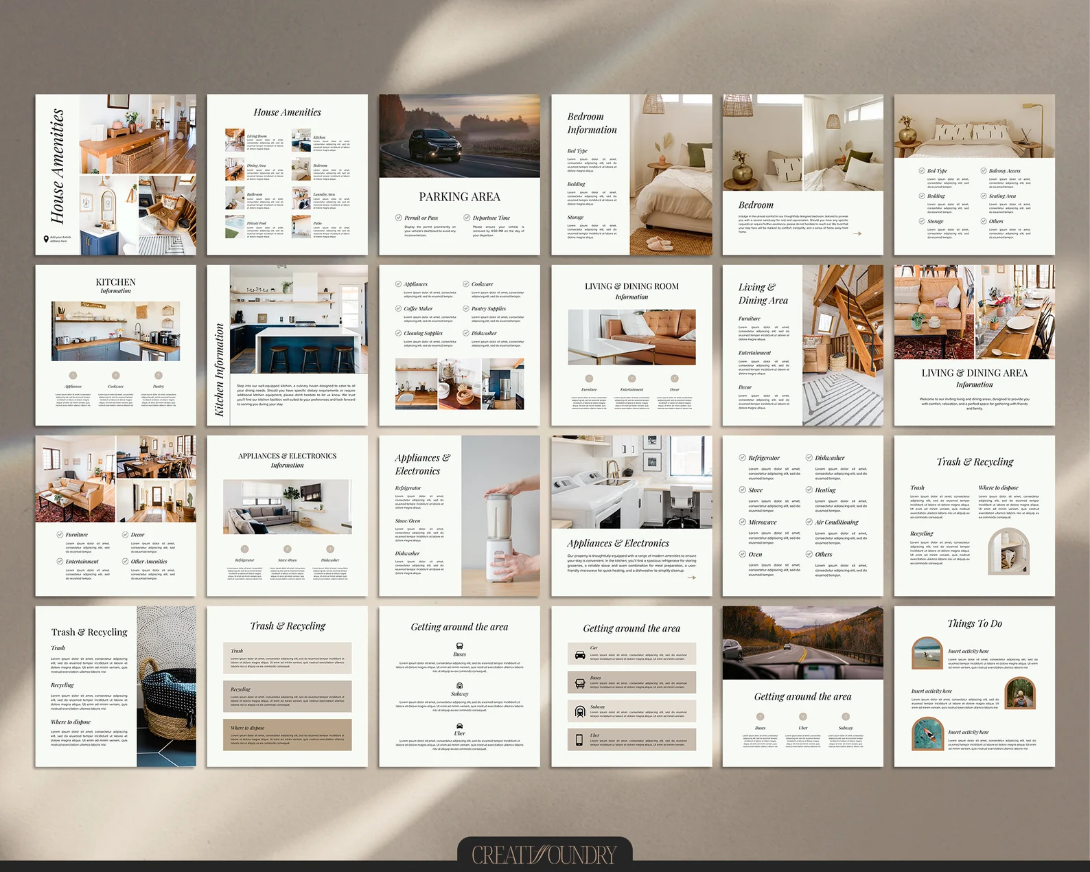 Enhance your vacation rental’s social media presence with our set of 100 customizable Airbnb Instagram Post Templates. Perfect for VRBO vacation house rentals, these minimalist designs are tailored to make your guest guides and property highlights shine.